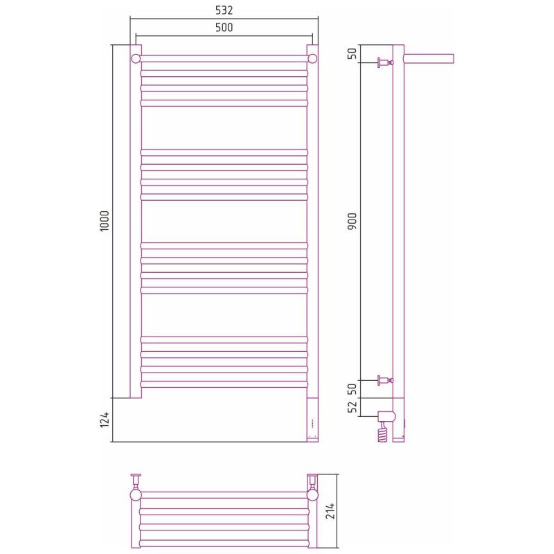 Полотенцесушитель электрический Сунержа Богема 3.0 1000 x 500 с полкой, ширина 53.2 см, высота 112.4 см, состаренная бронза, L/R