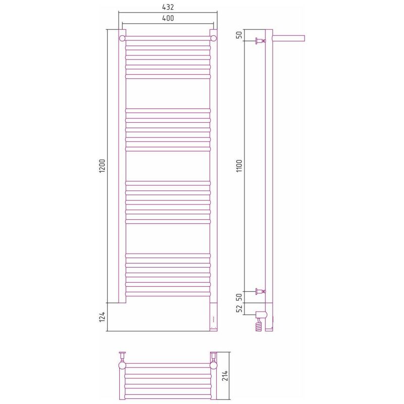 Полотенцесушитель электрический Сунержа Богема 3.0 1200 x 400 с полкой, ширина 43.2 см, высота 132.4 см, матовое золото, L/R