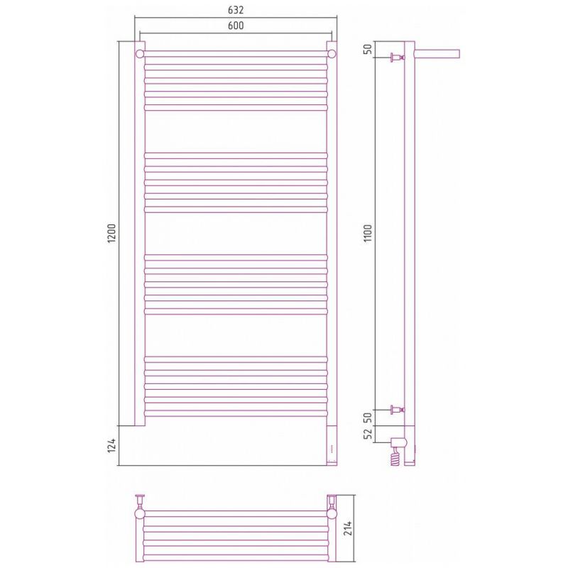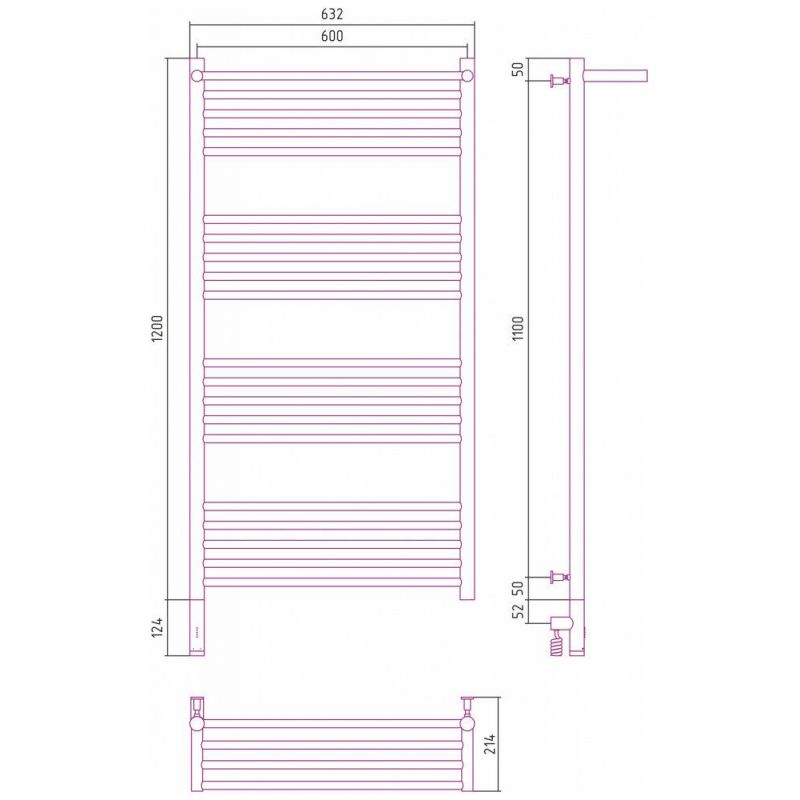 Полотенцесушитель электрический Сунержа Богема 3.0 1200 x 600 с полкой, ширина 63.2 см, высота 132.4 см, хром, L/R