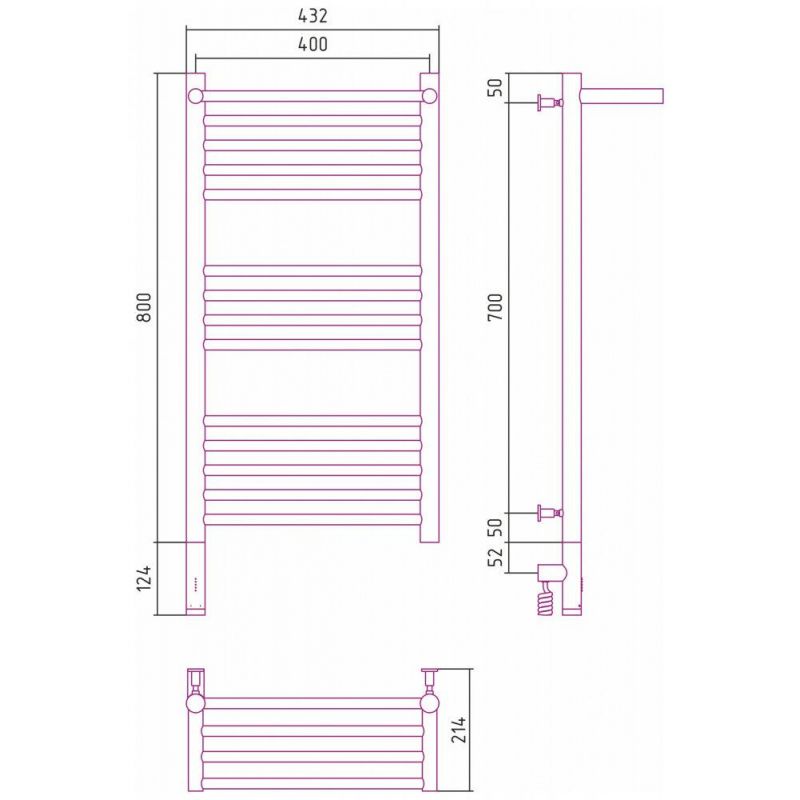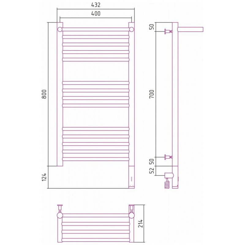 Полотенцесушитель электрический Сунержа Богема 3.0 800 x 400 с полкой, ширина 43.2 см, высота 92.4 см, хром, L/R