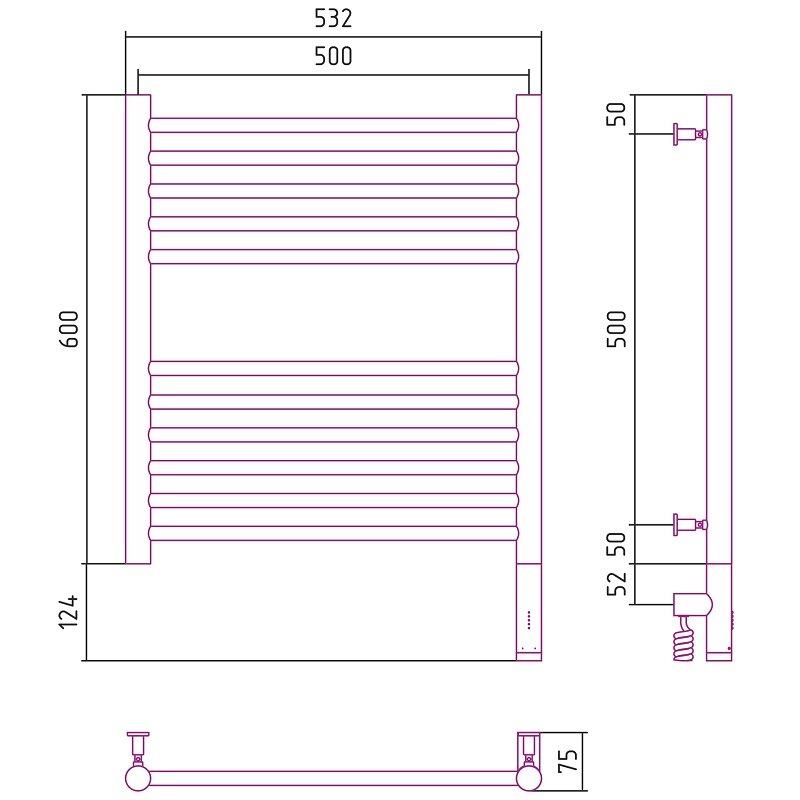 Полотенцесушитель электрический Сунержа Богема 3.0 прямая 600x500, ширина 53.2 см, высота 72.4 см, хром, МЭМ правый/левый, 00-5805-6050/00-5804-6050