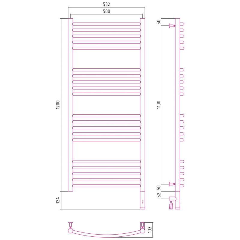 Полотенцесушитель электрический Сунержа Богема 3.0 выгнутая 1200х500, ширина 53.2 см, высота 132.4 см, хром, МЭМ правый, 00-5803-1250