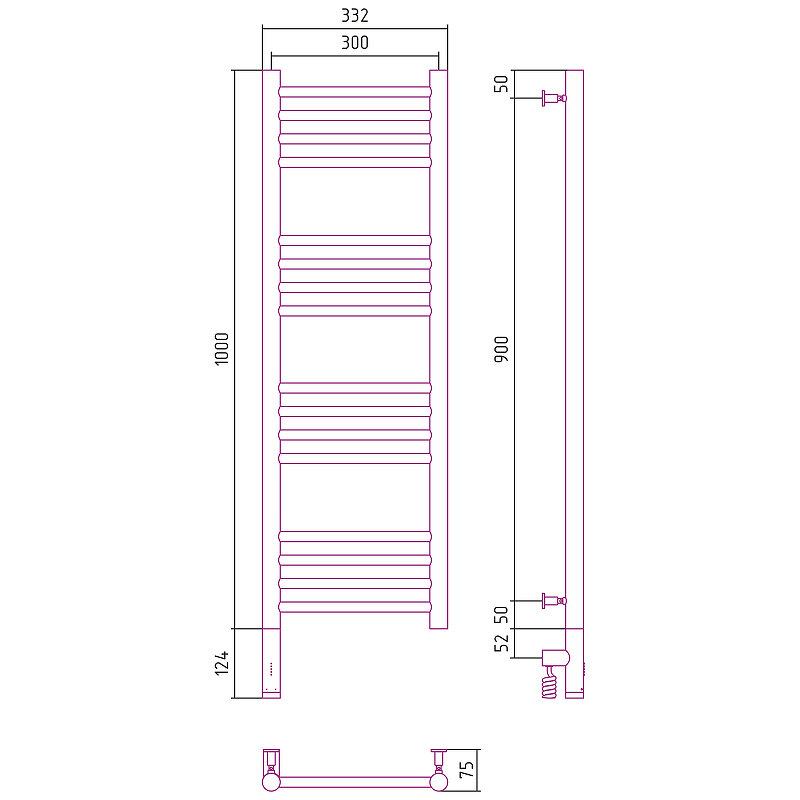 Полотенцесушитель электрический Сунержа Богема 3.0, высота 100 см, ширина 30 см, диммер слева/справа, цвет хром, 00-5804-1030/00-5805-1030