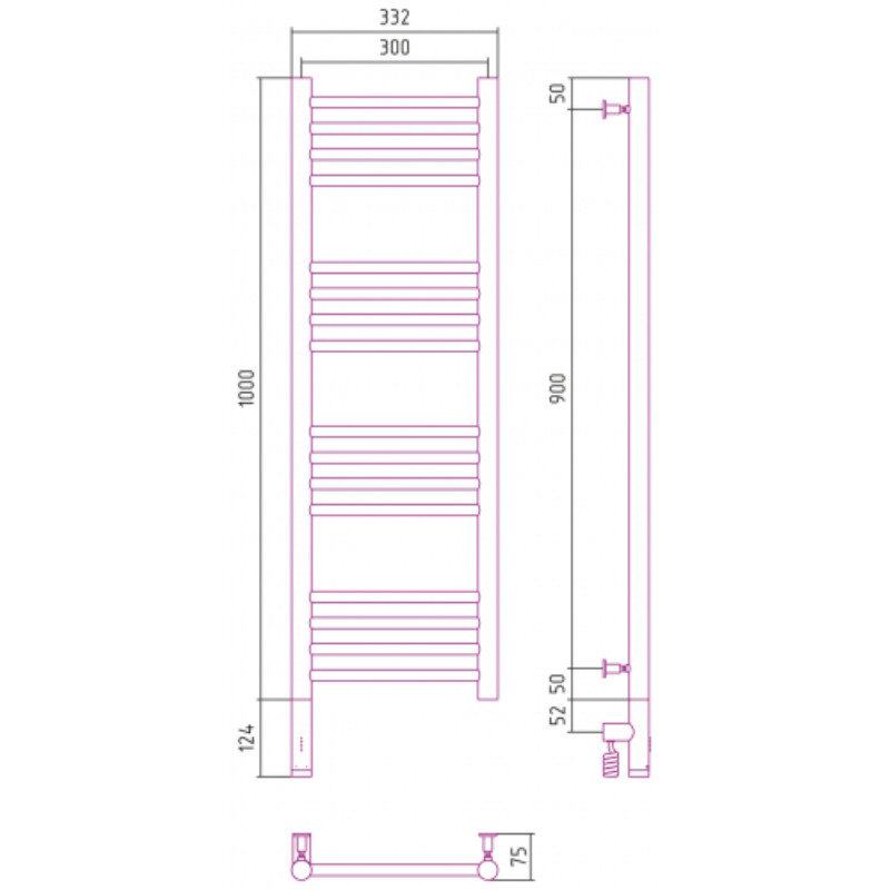 Полотенцесушитель электрический Сунержа Богема 3.0, высота 100 см, ширина 30 см, диммер слева/справа, цвет шампань, 020-5804-1030/020-5805-1030