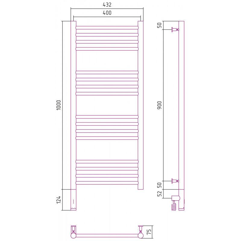 Полотенцесушитель электрический Сунержа Богема 3.0, высота 100 см, ширина 40 см, диммер слева/справа, цвет матовая шампань, 022-5804-1040/022-5805-1040