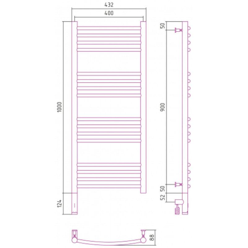 Полотенцесушитель электрический Сунержа Богема 3.0, высота 100 см, ширина 40 см, диммер слева/справа, цвет шампань, 020-5802-1040/020-5803-1040