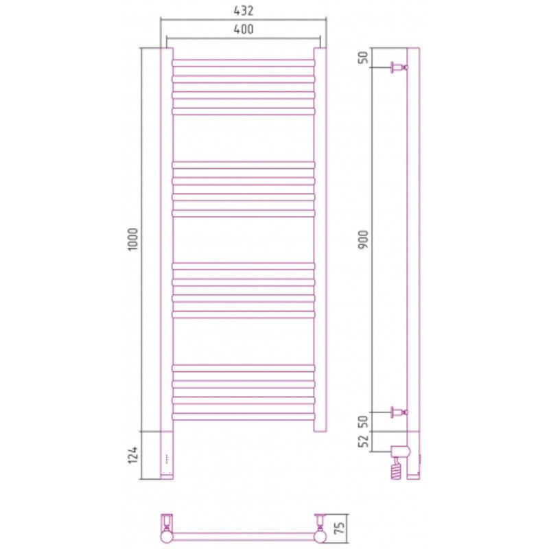 Полотенцесушитель электрический Сунержа Богема 3.0, высота 100 см, ширина 40 см, диммер слева/справа, цвет шампань, 020-5804-1040/020-5805-1040