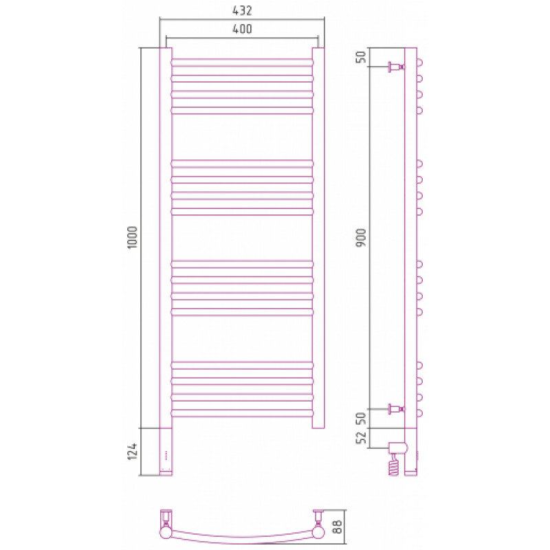 Полотенцесушитель электрический Сунержа Богема 3.0, высота 100 см, ширина 40 см, диммер слева/справа, цвет состаренная латунь, 051-5802-1040/051-5803-1040