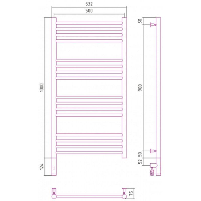 Полотенцесушитель электрический Сунержа Богема 3.0, высота 100 см, ширина 50 см, диммер слева/справа, цвет шампань, 020-5804-1050/020-5805-1050