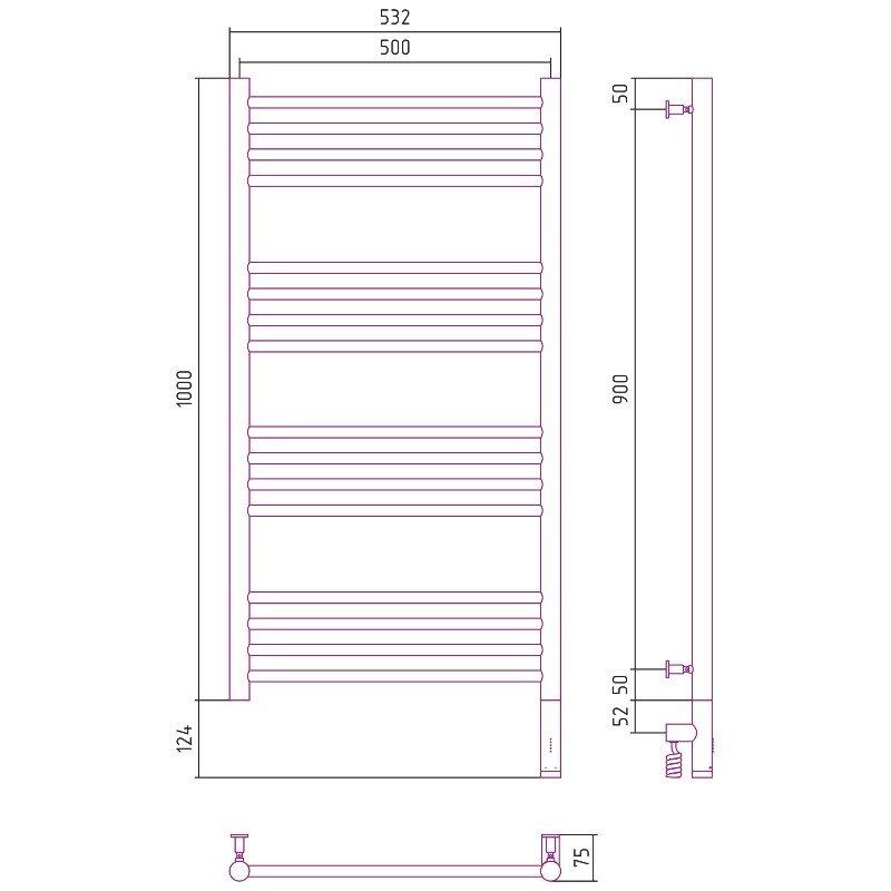 Полотенцесушитель электрический Сунержа Богема 3.0, высота 100 см, ширина 50 см, диммер справа, цвет хром, 00-5805-1050