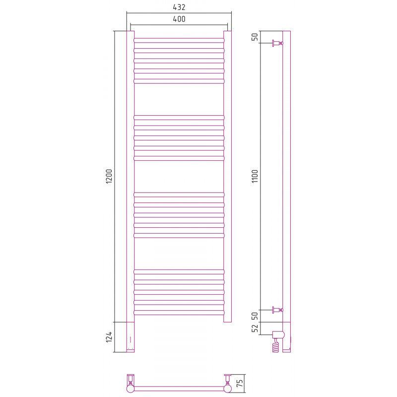 Полотенцесушитель электрический Сунержа Богема 3.0, высота 120 см, ширина 40 см, диммер слева/справа, цвет матовое золото, 032-5804-1240/032-5805-1240