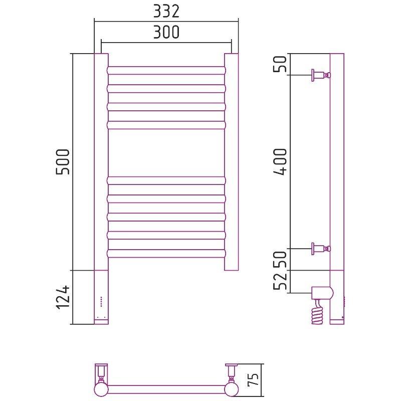 Полотенцесушитель электрический Сунержа Богема 3.0, высота 50 см, ширина 30 см, диммер слева/справа, цвет хром, 00-5804-5030/00-5805-5030