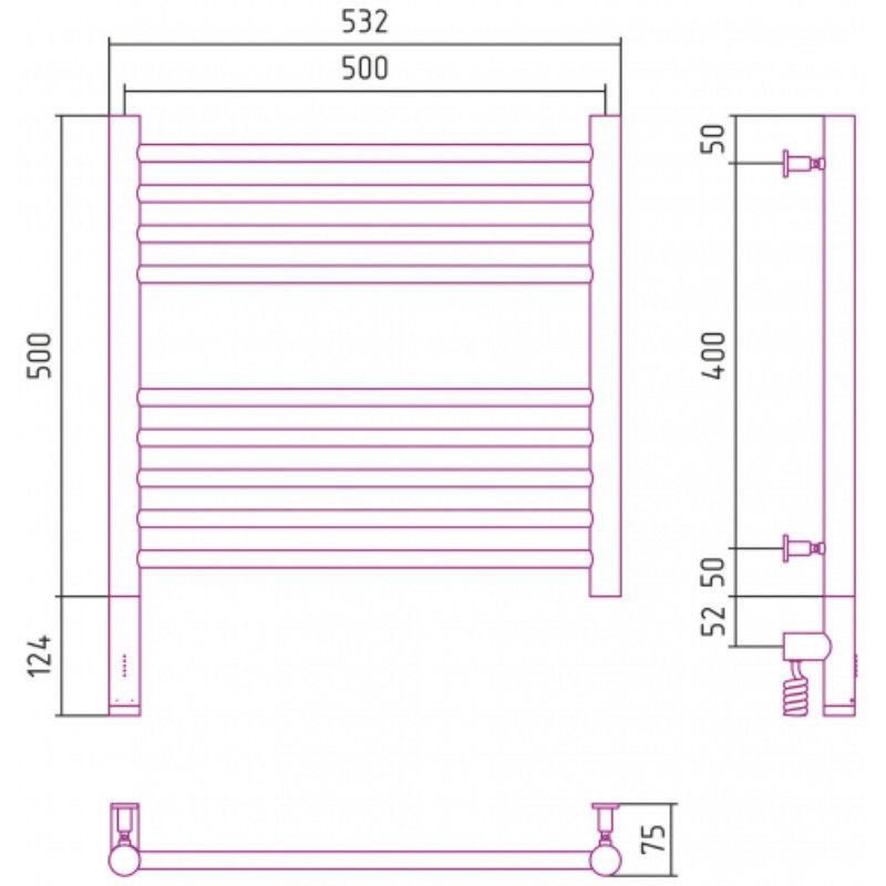 Полотенцесушитель электрический Сунержа Богема 3.0, высота 50 см, ширина 50 см, диммер слева/справа, цвет шампань, 020-5804-5050/020-5805-5050