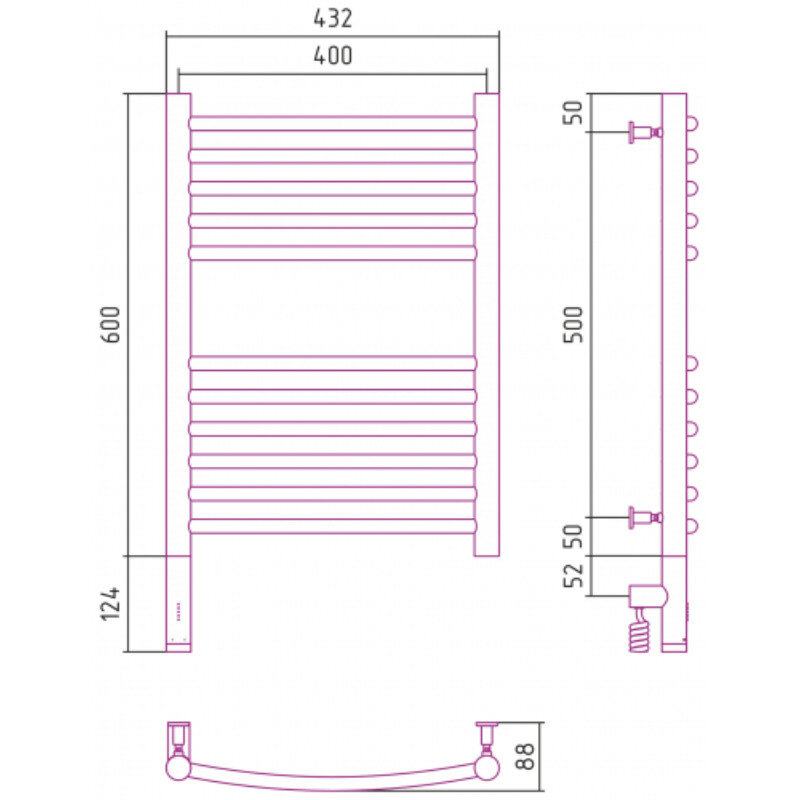 Полотенцесушитель электрический Сунержа Богема 3.0, высота 60 см, ширина 40 см, диммер слева/справа, цвет шампань, 020-5802-6040/020-5803-6040