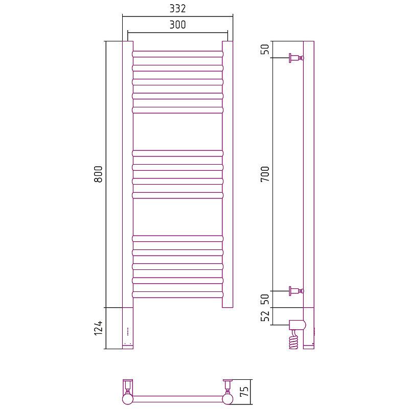 Полотенцесушитель электрический Сунержа Богема 3.0, высота 80 см, ширина 30 см, диммер слева/справа, цвет хром, 00-5804-8030/00-5805-8030