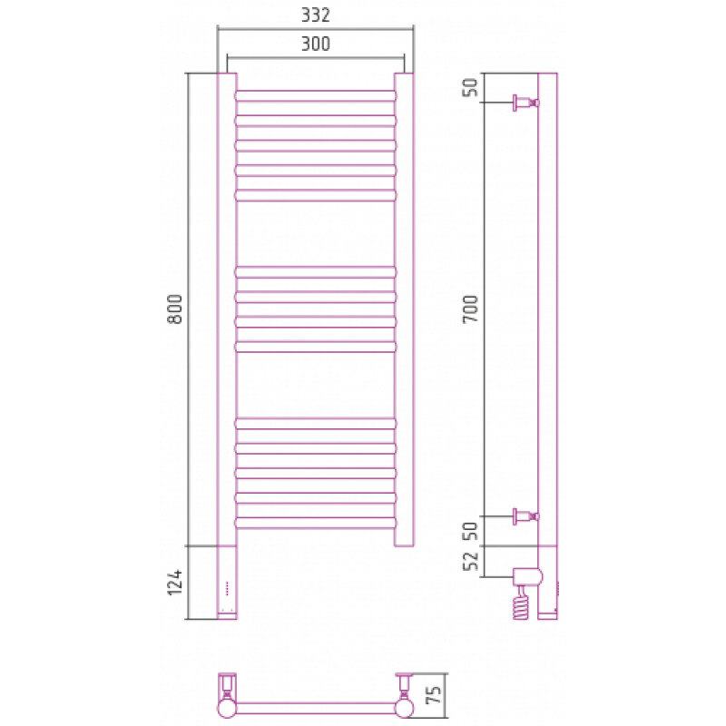 Полотенцесушитель электрический Сунержа Богема 3.0, высота 80 см, ширина 30 см, диммер слева/справа, цвет матовое золото, 032-5804-8030/032-5805-8030