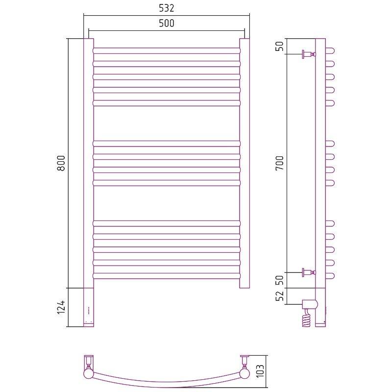 Полотенцесушитель электрический Сунержа Богема 3.0, высота 80 см, ширина 50 см, диммер слева/справа, цвет хром, 00-5802-8050/00-5803-8050