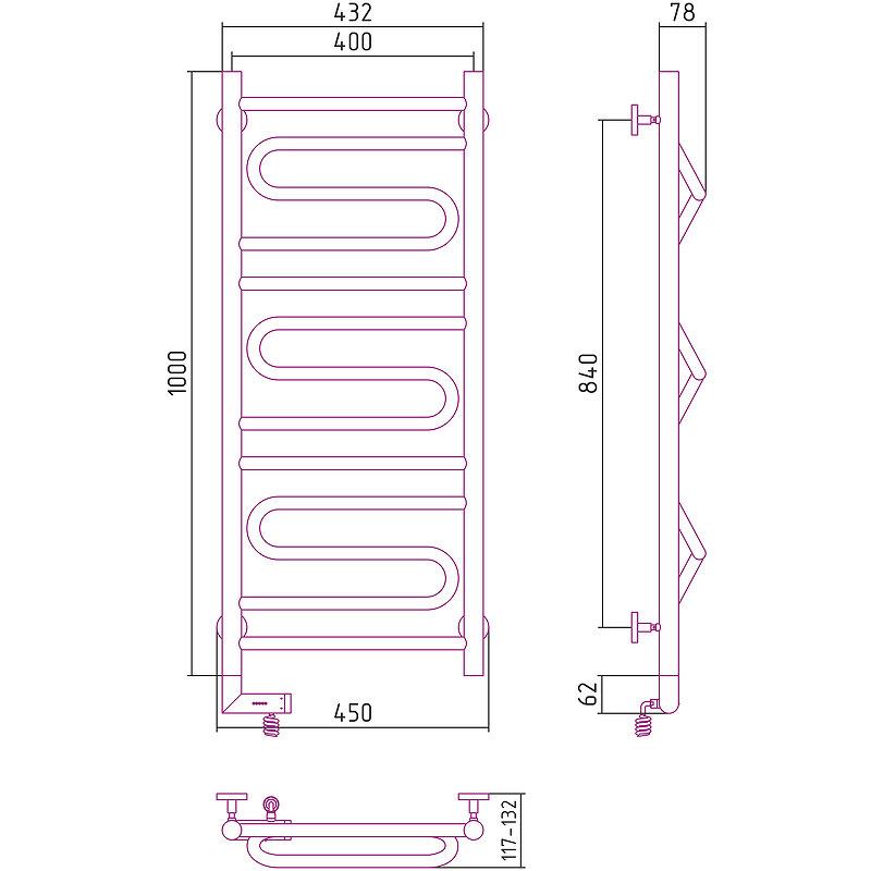 Полотенцесушитель электрический Сунержа Элегия 2.0, высота 100 см, ширина 40 см, диммер слева/справа, цвет хром, 00-5218-1040/00-5219-1040