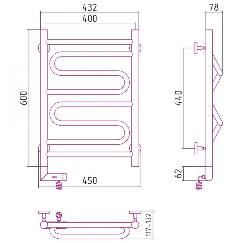 Полотенцесушитель электрический Сунержа Элегия 2.0, высота 60 см, ширина 40 см, диммер слева/справа, цвет золото, 03-5218-6040/03-5219-6040