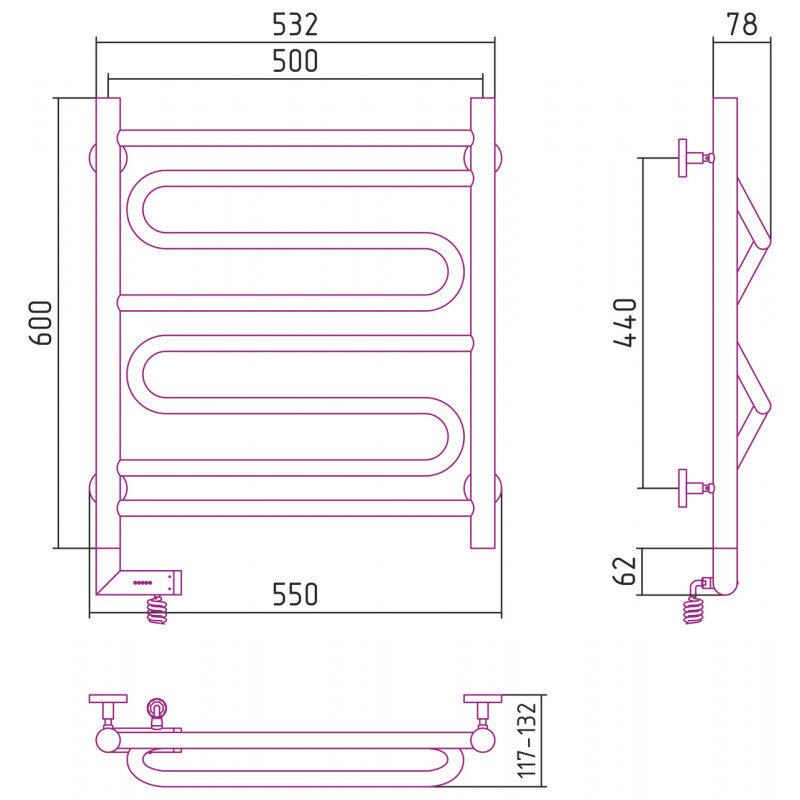 Полотенцесушитель электрический Сунержа Элегия 2.0, высота 60 см, ширина 50 см, диммер слева/справа, цвет золото, 03-5218-6050/03-5219-6050