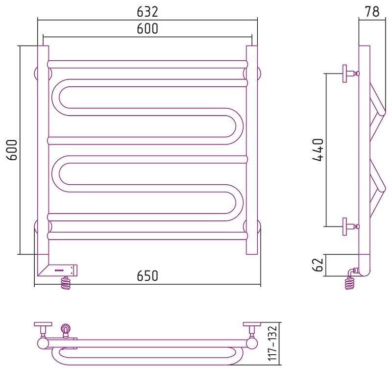 Полотенцесушитель электрический Сунержа Элегия 2.0, высота 60 см, ширина 60 см, диммер слева/справа, цвет хром, 00-5218-6060/00-5219-6060