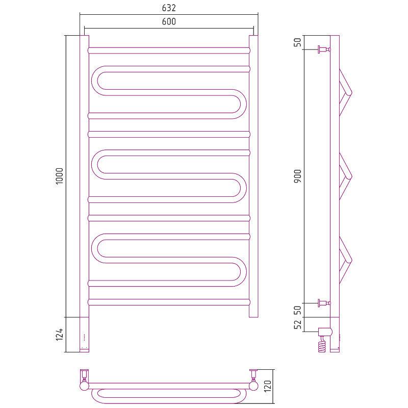 Полотенцесушитель электрический Сунержа Элегия 3.0, высота 100 см, ширина 60 см, диммер слева/справа, цвет шампань, 020-5818-1060/020-5819-1060