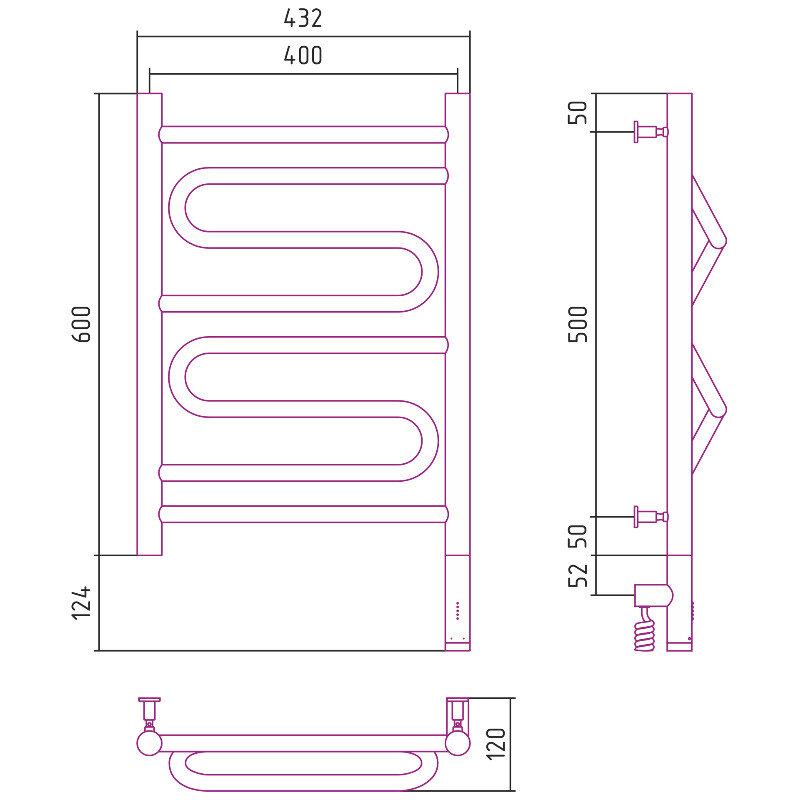 Полотенцесушитель электрический Сунержа Элегия 3.0, высота 60 см, ширина 40 см, диммер слева/справа, цвет шампань, 020-5818-6040/020-5819-6040