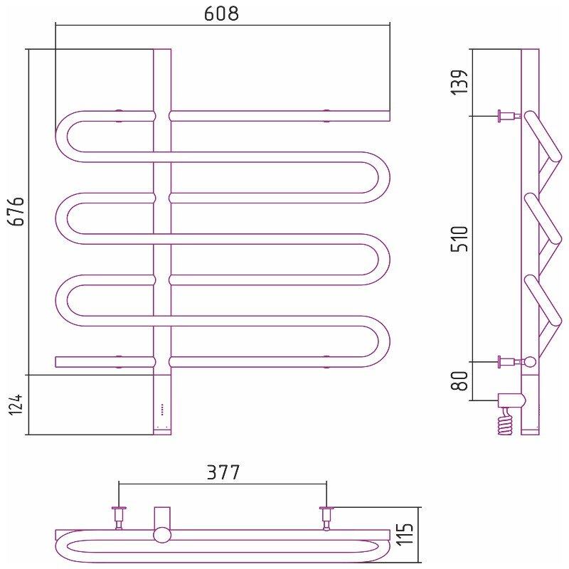 Полотенцесушитель электрический Сунержа Эпатаж 3.0, высота 80 см, ширина 60 см, диммер слева/справа, цвет хром, 00-5850-8060/00-5851-8060