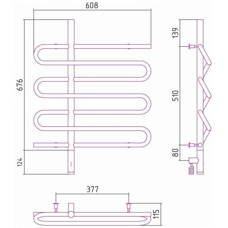 Полотенцесушитель электрический Сунержа Эпатаж 3.0, высота 80 см, ширина 60 см, диммер слева/справа, цвет матовое золото, 032-5850-8060/032-5851-8060
