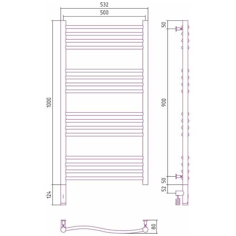 Полотенцесушитель электрический Сунержа Флюид 3.0, высота 100 см, ширина 50 см, диммер слева/справа, цвет хром, 00-5820-1050/00-5821-1050