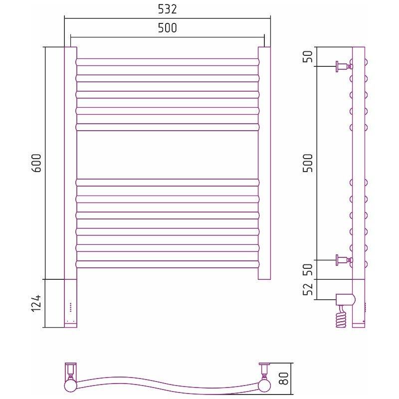 Полотенцесушитель электрический Сунержа Флюид 3.0, высота 60 см, ширина 50 см, диммер слева/справа, цвет хром, 00-5820-6050/00-5821-6050