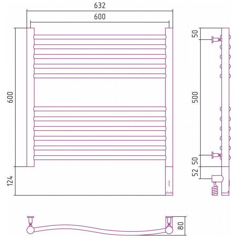 Полотенцесушитель электрический Сунержа Флюид 3.0, высота 60 см, ширина 60 см, диммер справа, цвет золото, 03-5821-6060