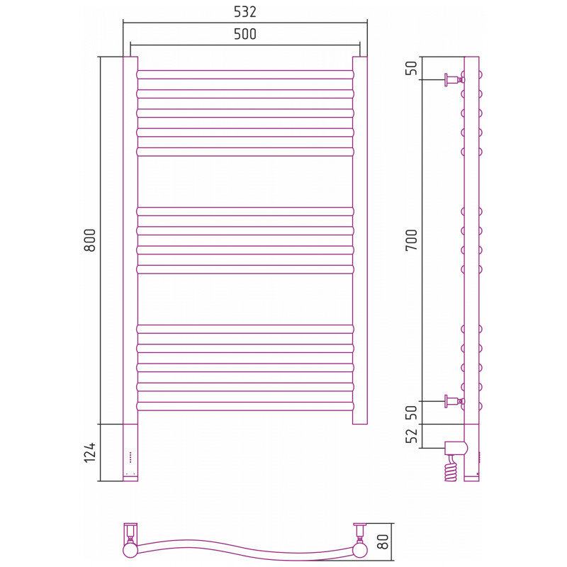 Полотенцесушитель электрический Сунержа Флюид 3.0, высота 80 см, ширина 50 см, диммер слева/справа, цвет матовая шампань, 022-5820-8050/022-5821-8050