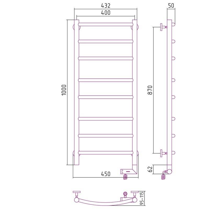 Полотенцесушитель электрический Сунержа Галант 2.0, высота 100 см, ширина 40 см, диммер слева/справа, цвет хром, 00-5200-1040/00-5201-1040