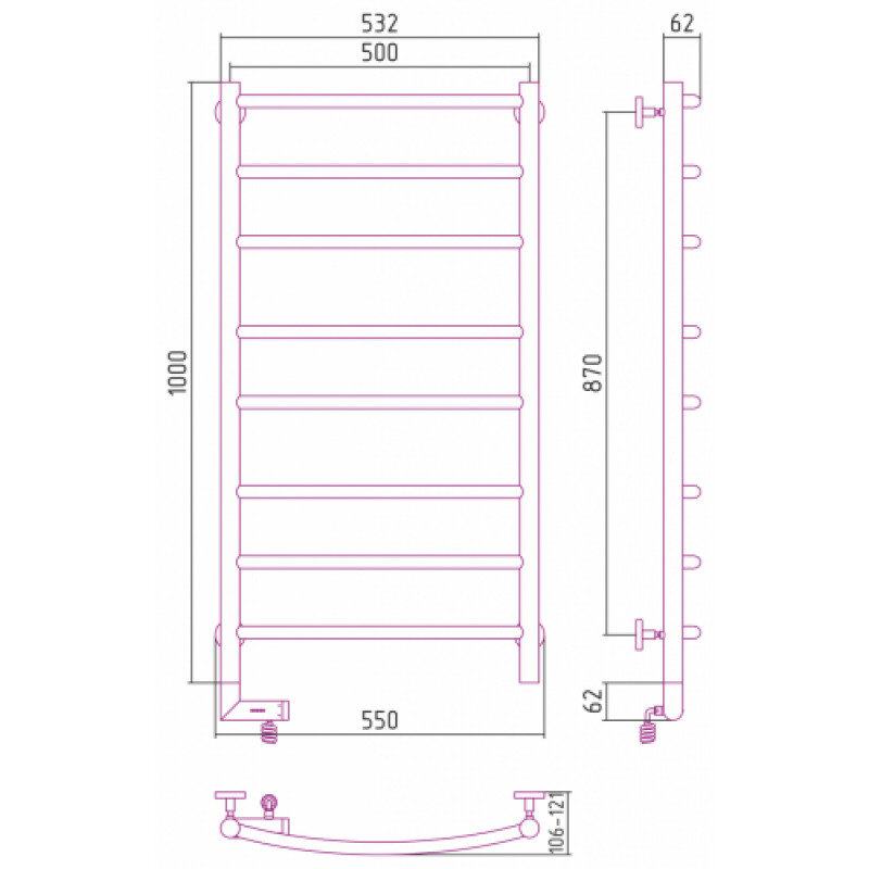 Полотенцесушитель электрический Сунержа Галант 2.0, высота 100 см, ширина 50 см, диммер слева, цвет золото, 03-5200-1050