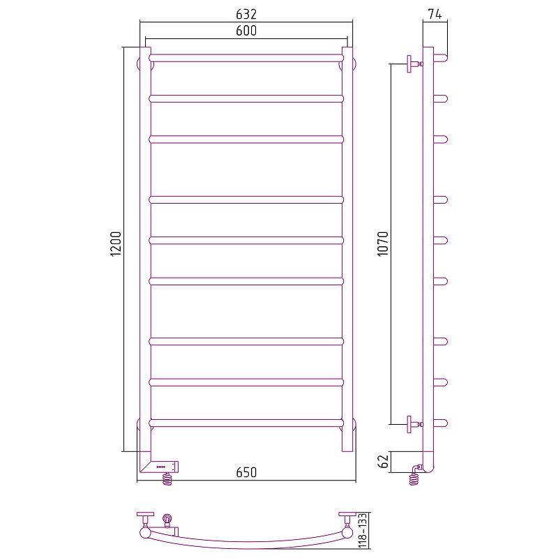 Полотенцесушитель электрический Сунержа Галант 2.0, высота 120 см, ширина 60 см, диммер слева/справа, цвет хром, 00-5200-1260/00-5201-1260