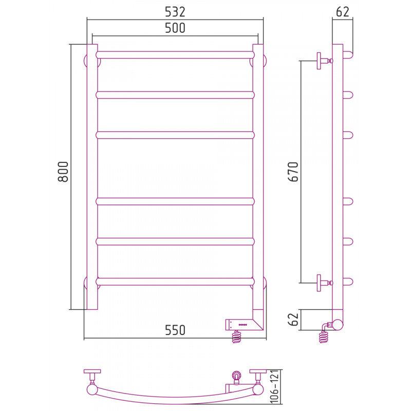 Полотенцесушитель электрический Сунержа Галант 2.0, высота 80 см, ширина 50 см, диммер справа, цвет золото, 03-5201-8050