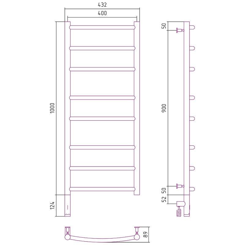 Полотенцесушитель электрический Сунержа Галант 3.0, высота 100 см, ширина 40 см, диммер слева/справа, цвет хром, 00-5800-1040/00-5801-1040