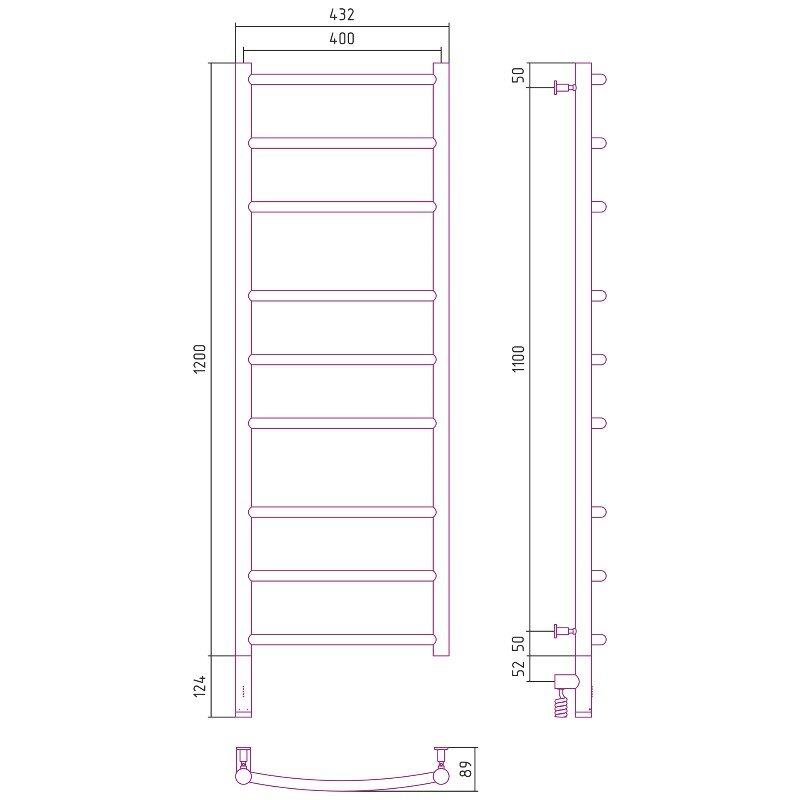 Полотенцесушитель электрический Сунержа Галант 3.0, высота 120 см, ширина 40 см, диммер слева/справа, цвет хром, 00-5800-1240/00-5801-1240