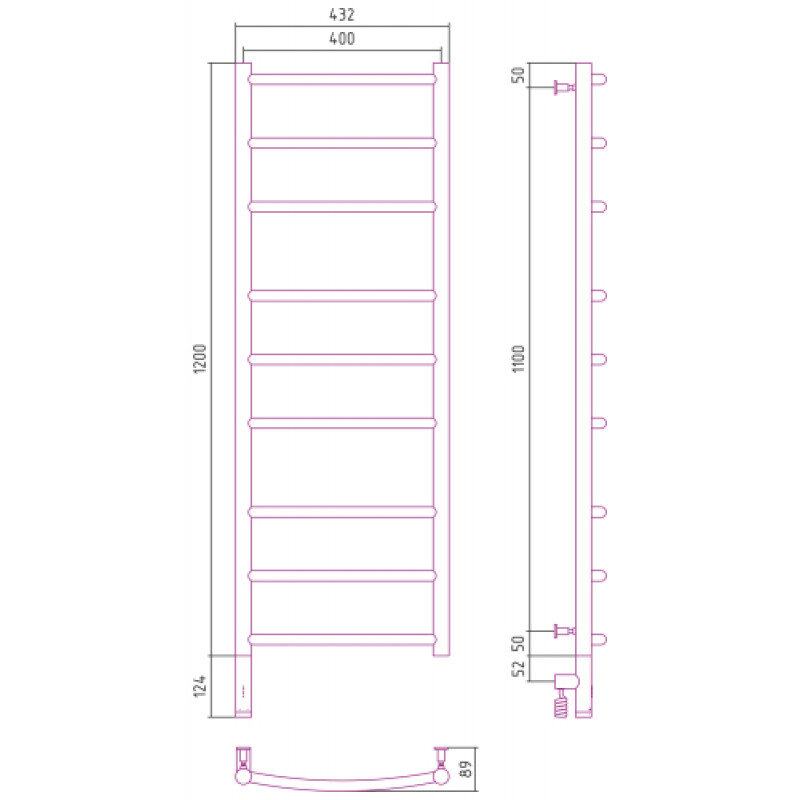 Полотенцесушитель электрический Сунержа Галант 3.0, высота 120 см, ширина 40 см, диммер слева/справа, цвет состаренная латунь, 051-5800-1240/051-5801-1240