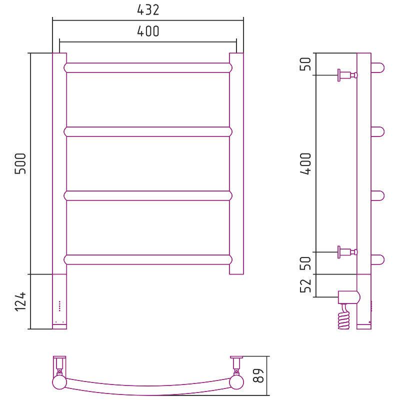 Полотенцесушитель электрический Сунержа Галант 3.0, высота 50 см, ширина 40 см, диммер слева/справа, цвет шампань, 020-5800-5040/020-5801-5040