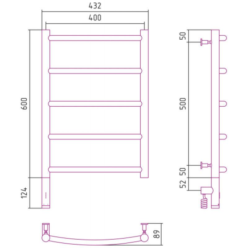 Полотенцесушитель электрический Сунержа Галант 3.0, высота 60 см, ширина 40 см, диммер слева/справа, цвет матовое золото, 032-5800-6040/032-5801-6040