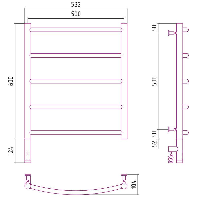 Полотенцесушитель электрический Сунержа Галант 3.0, высота 60 см, ширина 50 см, диммер слева/справа, цвет шампань, 020-5800-6050/020-5801-6050