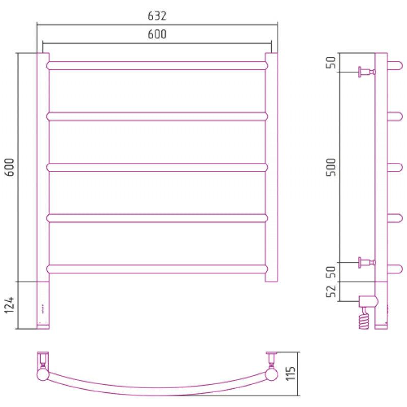 Полотенцесушитель электрический Сунержа Галант 3.0, высота 60 см, ширина 60 см, диммер слева/справа, цвет матовая шампань, 022-5800-6060/022-5801-6060
