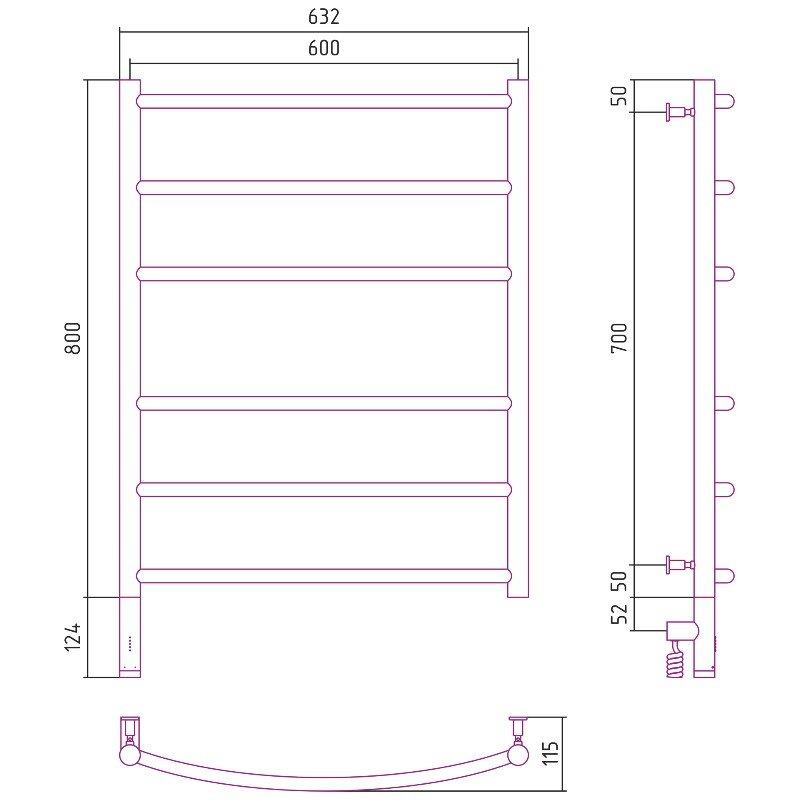 Полотенцесушитель электрический Сунержа Галант 3.0, высота 80 см, ширина 60 см, диммер слева/справа, цвет хром, 00-5800-8060/00-5801-8060