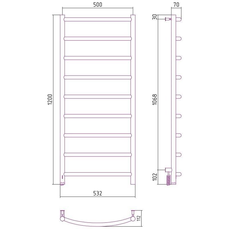 Полотенцесушитель электрический Сунержа Галант 4.0, ширина 50 см высота 120 см, диммер слева/справа, хром, 00-0830-1250/00-0831-1250