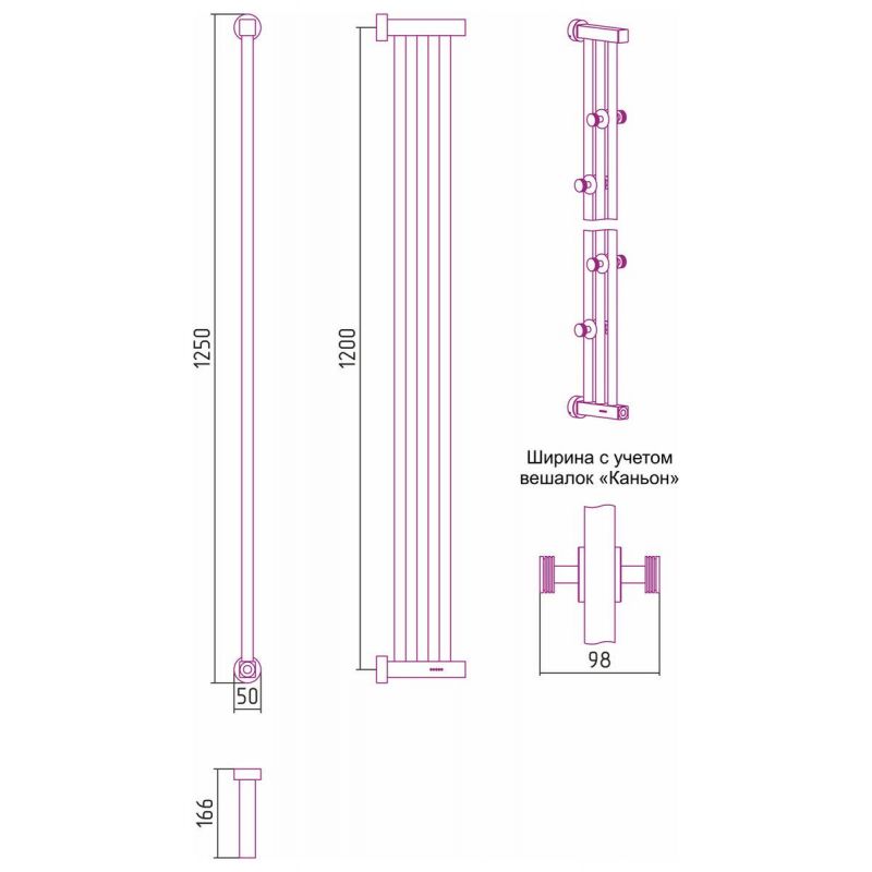 Полотенцесушитель электрический Сунержа Хорда 4.0 1200 x 16.6, ширина 16.6 см, высота 120 см, черный матовый, 31-0834-1200