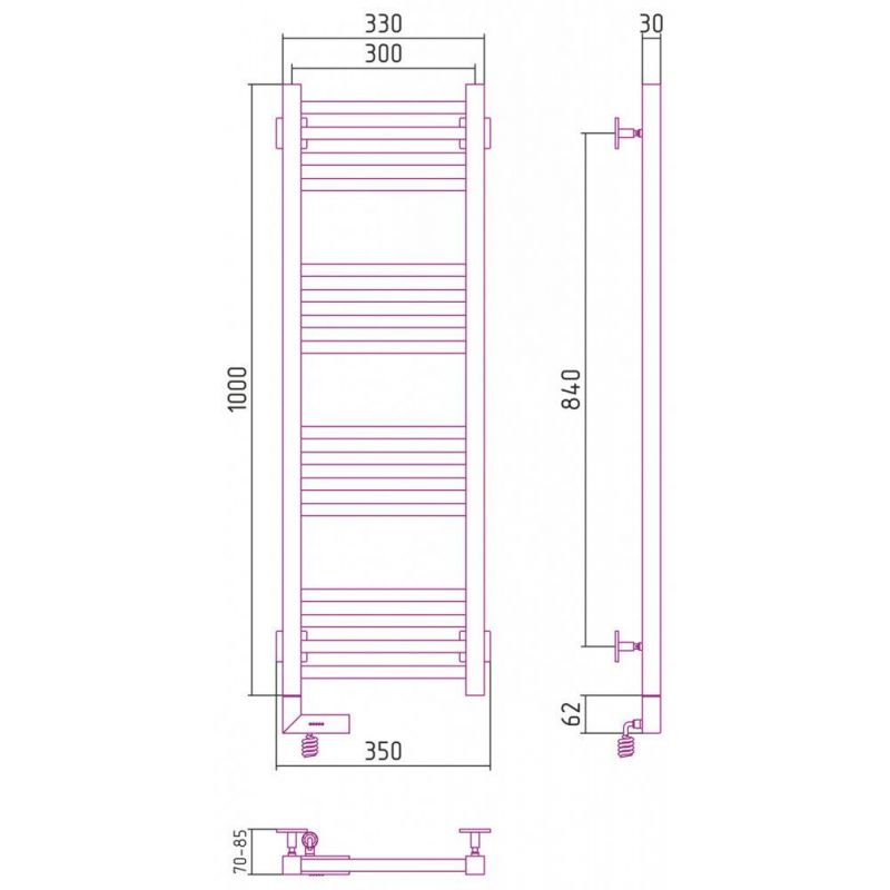 Полотенцесушитель электрический Сунержа Модус 2.0 1000 x 300, ширина 30 см, высота 100 см, МЭМ левый/правый, хром