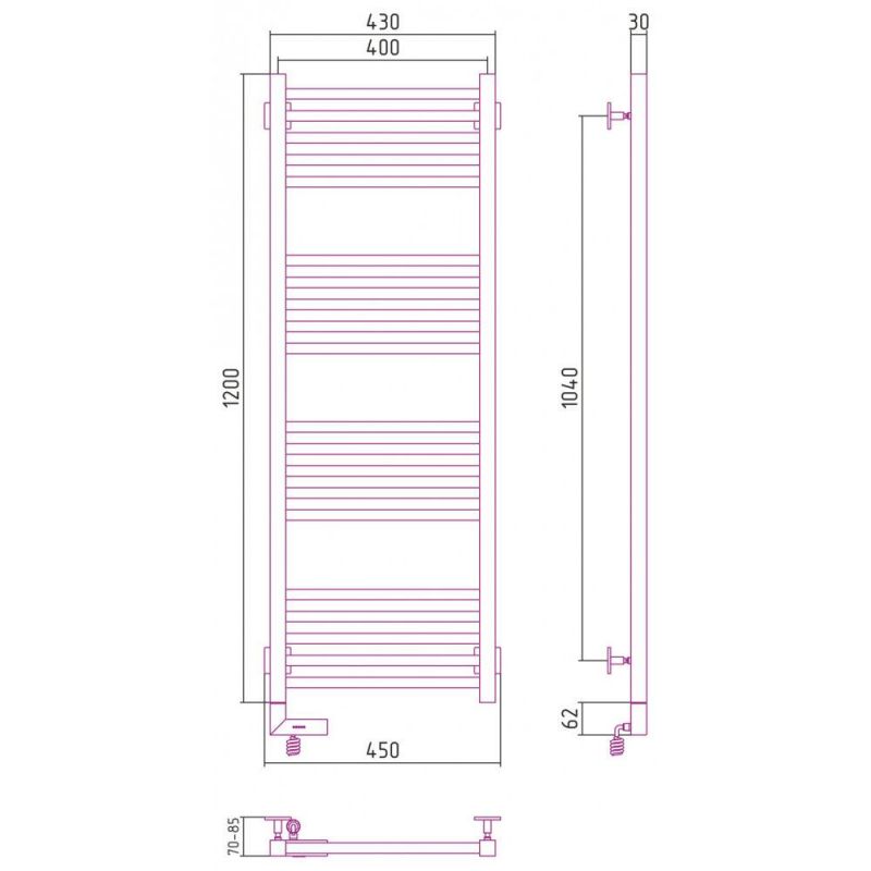 Полотенцесушитель электрический Сунержа Модус 2.0 1200 x 400, ширина 40 см, высота 120 см, МЭМ левый/правый, хром