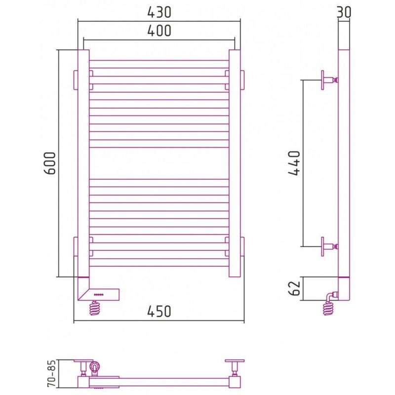 Полотенцесушитель электрический Сунержа Модус 2.0 600 x 400, ширина 40 см, высота 60 см, МЭМ левый/правый, хром